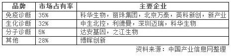 國(guó)內(nèi)IVD細(xì)分市場(chǎng)份額和主要龍頭企業(yè)