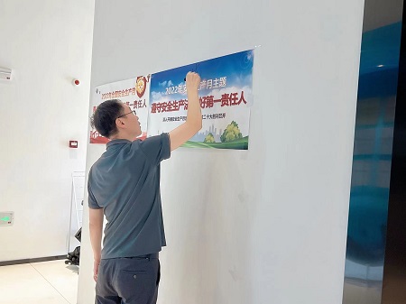 7月是公司“安全生產(chǎn)月”,總經(jīng)理肖總帶領(lǐng)各部門(mén)經(jīng)理進(jìn)行了“安全生產(chǎn)月”活動(dòng)啟動(dòng)儀式,本月主題“安全發(fā)展、預(yù)防為主”。目的是進(jìn)一步推動(dòng)安全生產(chǎn)法律、法律和安全知識(shí)的宣傳普及,提高全員安全意識(shí)和安全素質(zhì),預(yù)防和減少各類事故的發(fā)生。希望本月的活動(dòng)開(kāi)展得扎實(shí)、有效,營(yíng)造出良好的安全生產(chǎn)氛圍!